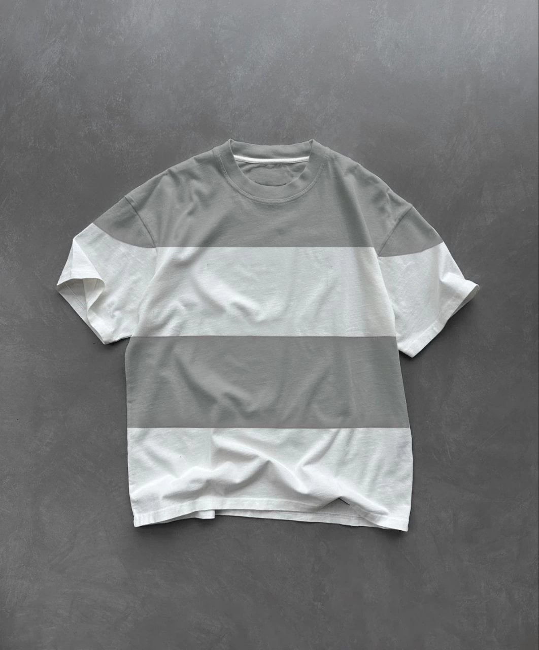 Unisex Bisiklet Yaka Parçalı T-Shirt – Gri