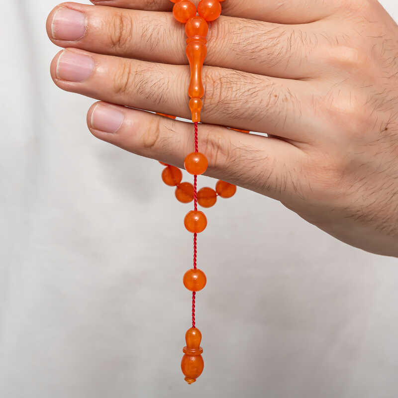Kehribar, çam ağacı reçinesinin toprak altında uzun yıllar boyunca birikerek oluşan bir maddedir. Hemen hemen taş ile aynı sertliktedir fakat yoğunluğu düşüktür. Çam kokusu yayar. Oluşumu uzun zaman aldığından ve yapay olarak yapılamadığından değerli bir maddedir. Sıkma kehribar ise kehribar taşından farklı olarak onun özelliklerini taşıyan, görüntü itibariyle ona benzeyen fakat gerçek olmayan bir malzemedir. Ülkemizde ve dünyanın bir çok yerinde kehribar taşından çeşitli malzemeler üretilmiştir. Ülkemizde en yaygın olarak tesbih üretilmektedir. Kehribar tesbihler elde ısındıkça kehribar benzeri bir koku verir ve renk değiştirir. Bir çok rengi vardır. Hatta iki rengin birleşiminden oluşan kehribar tesbih modelleri de vardır.Ülkemizin güzide tesbih ustaları bu malzemeyi sıklıkla işlemek suretiyle çeşitli sanat eserleri meydana getirirler. Bu tesbihler de koleksiyonerler tarafından alınıp satılmaktadır. Sıkma kehribar tesbih modeli de günlük hayatta kullanılabilecek çok şık bir tesbih çeşididir. Özel günlerin vazgeçilmez hediyesi sıkma kehribar tesbihler erkekler için doğum günü, sevgililer günü ve babalar günü gibi özel zamanlarda hediye olarak tercih edilebilir.Sıkma kehribar tesbih modeli diğer kehribar tesbih modellerinde olduğu gibi tamamen el emeği ile imal edilmiştir.